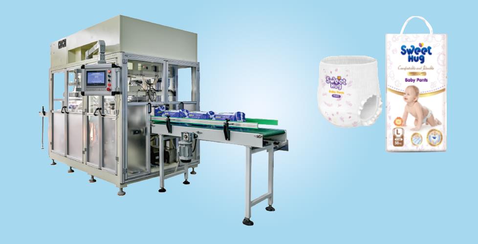 P28包装机是主要用于卫生巾、婴儿纸尿裤(小包)、婴儿护理垫、棉柔巾等装袋封口的全自动包装机。